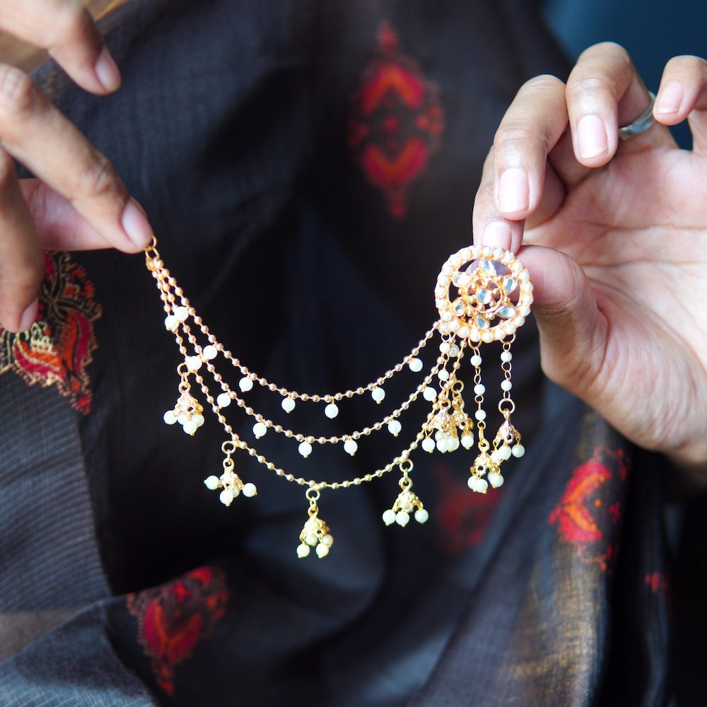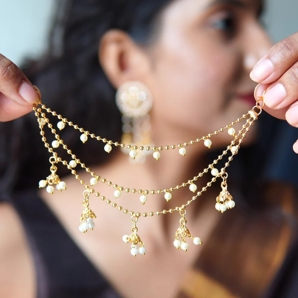 Each piece is carefully handmade by skilled artisans who ensure flawless craftsmanship in every curve and motif. The ear cuff design wraps gracefully along the ear, while the delicate matil chain adds an element of sophistication and heritage. Together, they create an enchanting combination that highlights your beauty and complements any traditional outfit.