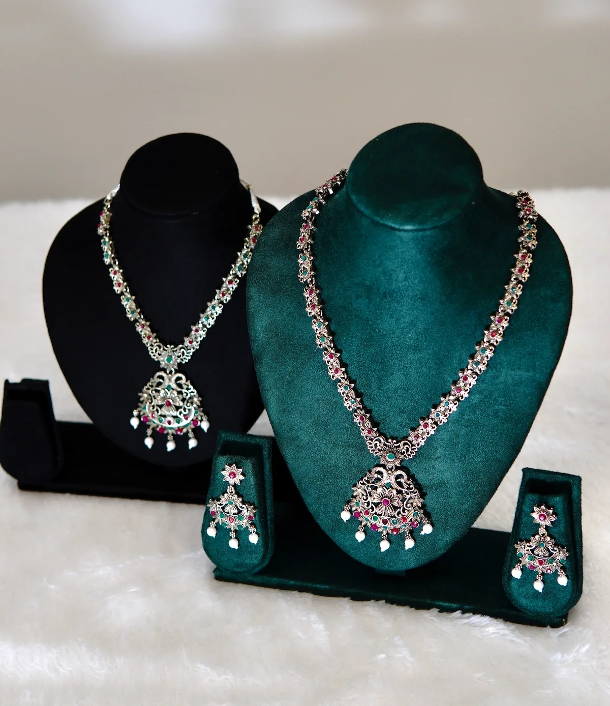 Despite its bold and layered appearance, this oxidised necklace set remains lightweight and comfortable. The smooth back finish prevents skin irritation, while the strong hooks and clasps ensure a secure fit even during long hours of dancing. Additionally, Huviena uses premium-quality metal and safe oxidised plating, which helps maintain the beauty and finish over time.