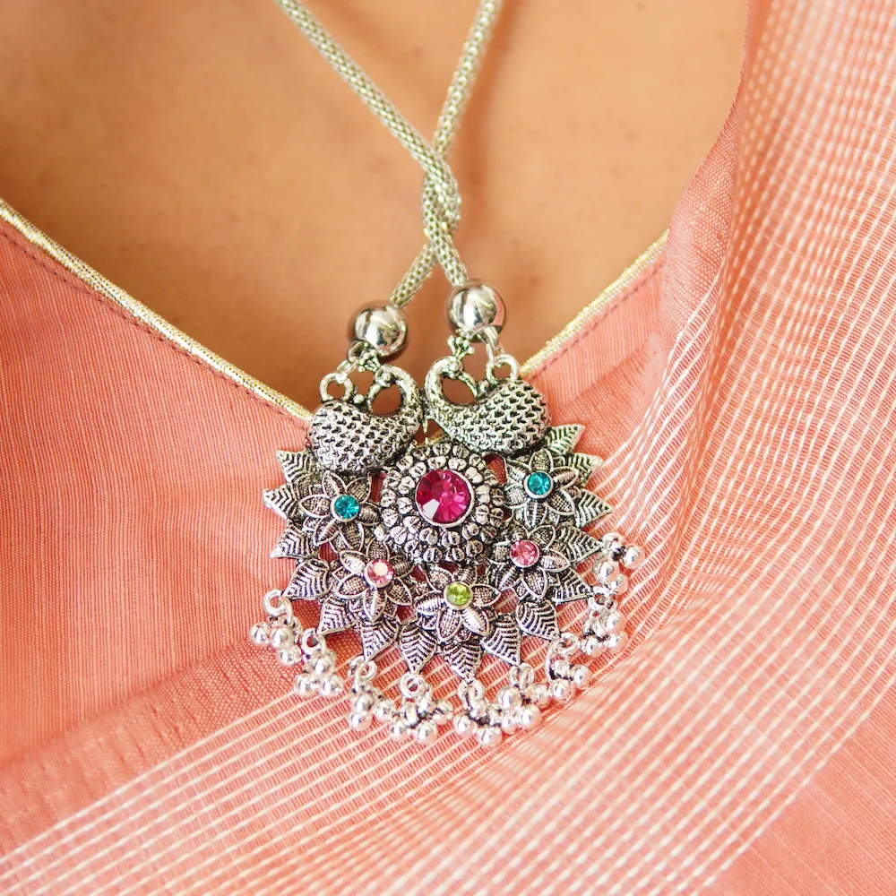 The intricate oxidised detailing adds a vintage charm while ensuring the jewelry remains lightweight and comfortable for long wear. The matching earrings complete the look, making it a cohesive and elegant set. This tribal jewelry set can instantly elevate ethnic outfits like sarees, lehengas, and kurtis, or even enhance modern fusion looks with dresses or gowns.