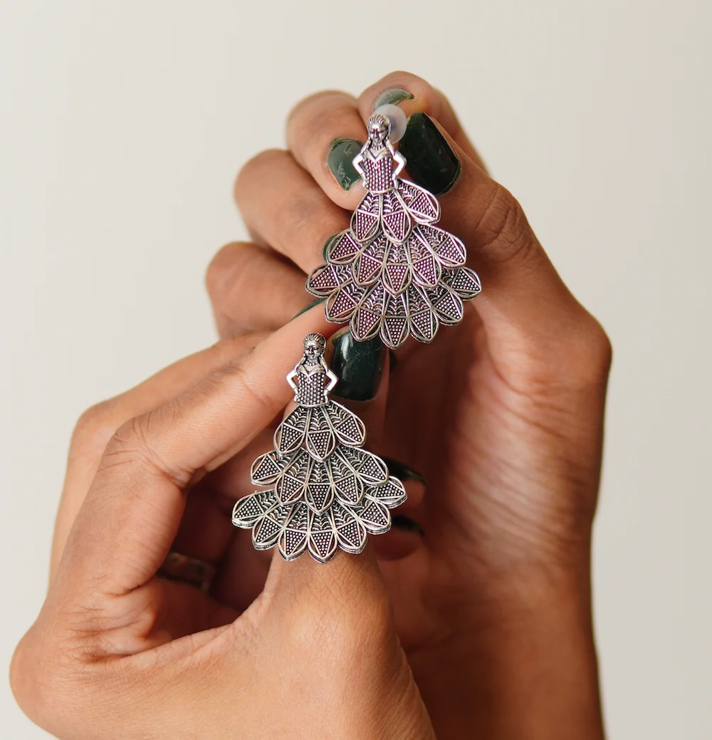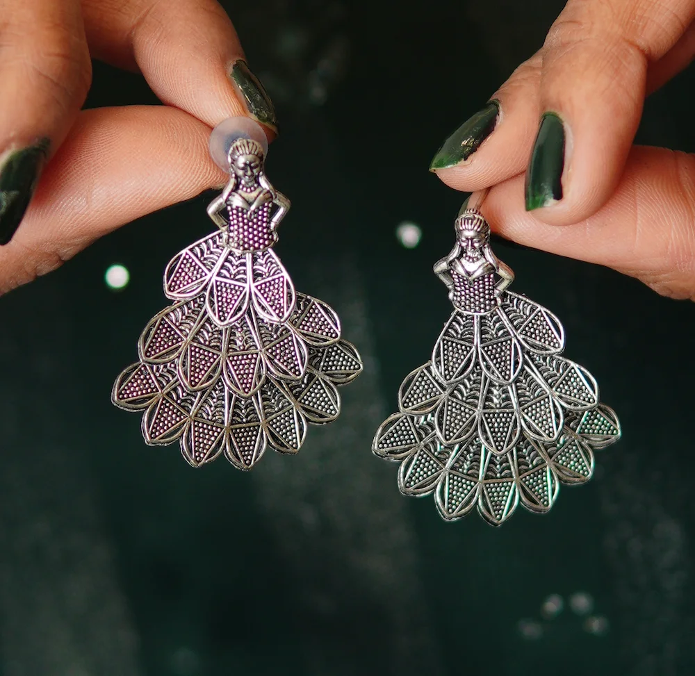 Each earring is meticulously handcrafted to highlight intricate details. The oxidised finish creates a rustic, vintage look while maintaining long-lasting shine and durability. Unlike heavy statement earrings, these drops remain lightweight and comfortable, so you can wear them for hours without any discomfort.