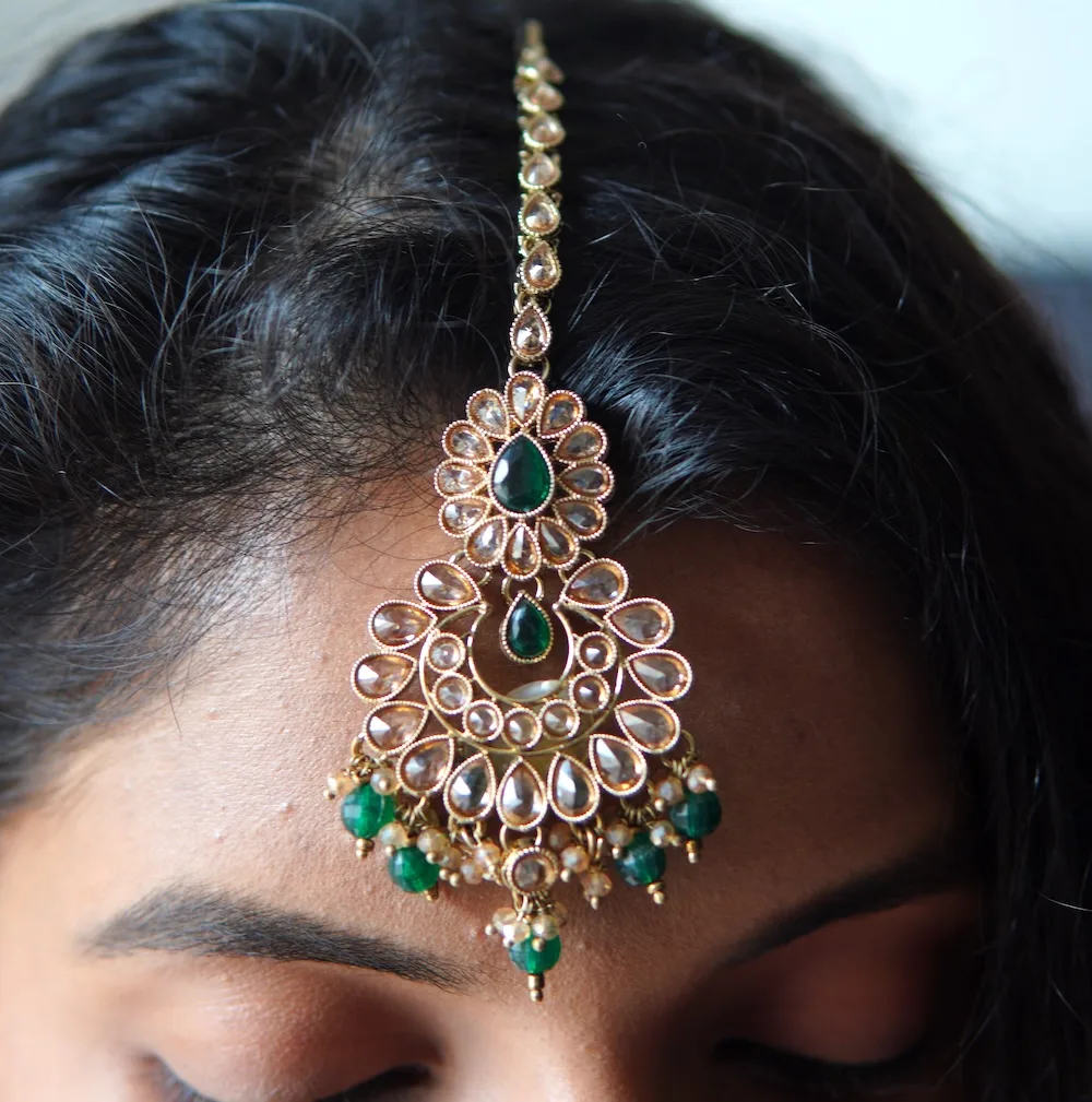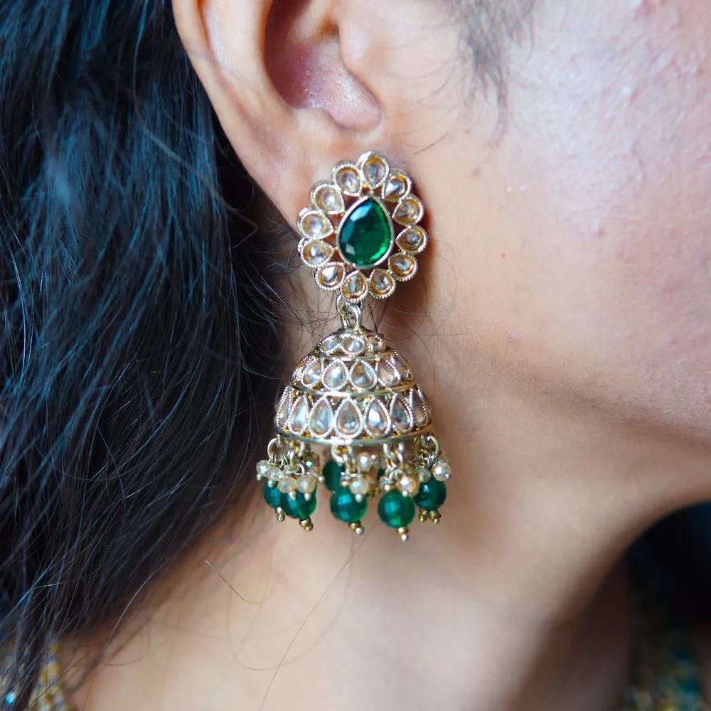 • Elegant green stone design with golden finish